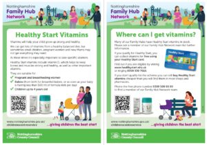 Many of the Family Hubs in Nottinghamshire have Healthy Start vitamins in stock. Please ask a member of the Family Hub Network team for further information.